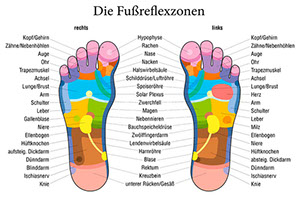 Alle Körperzonen, Organe, Muskeln, Knochen, Blut und Lymphgefäße haben eine entsprechende Reflexzone im Fuß. Über diese ist es möglich, reflektorisch positiv auf den Körper Einfluss zu nehmen. In der Fußreflexzonentherapie wird belastetes Gewebe mit effektiven Massagegriffen gelockert, zur Durchblutung angeregt, organisiert und geordnet. Sind z.B. die Reflexzonen der Lymphgefäße von Belastungen befreit, wird die Abwehrkraft sich verbessern.